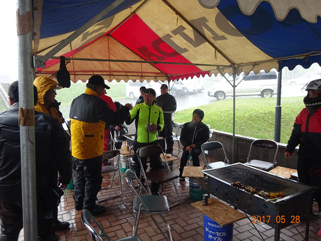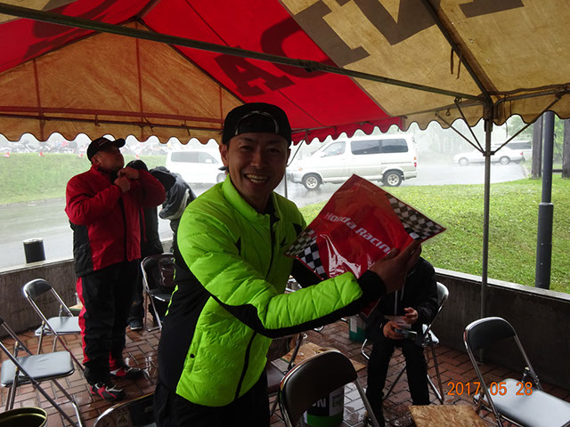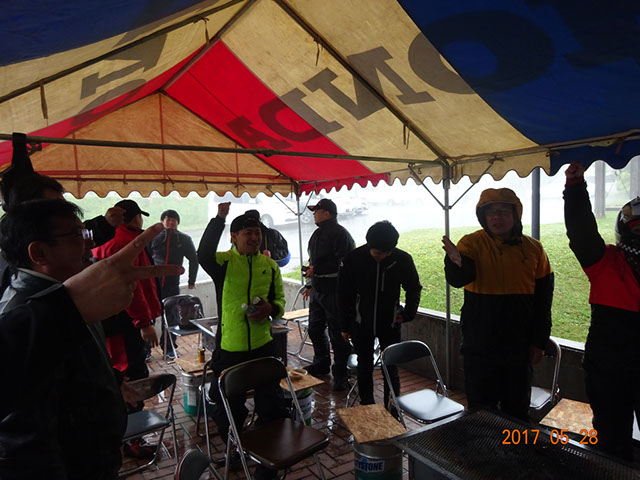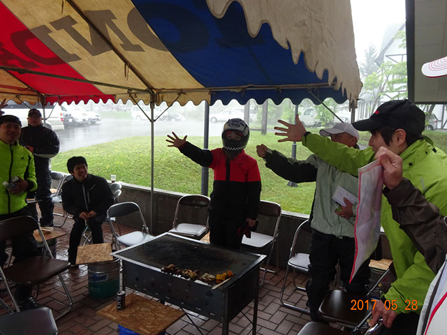 中山峠にて休憩をとります。雨と気温の低さで体力を奪われましたがここで一休みして再出発です。