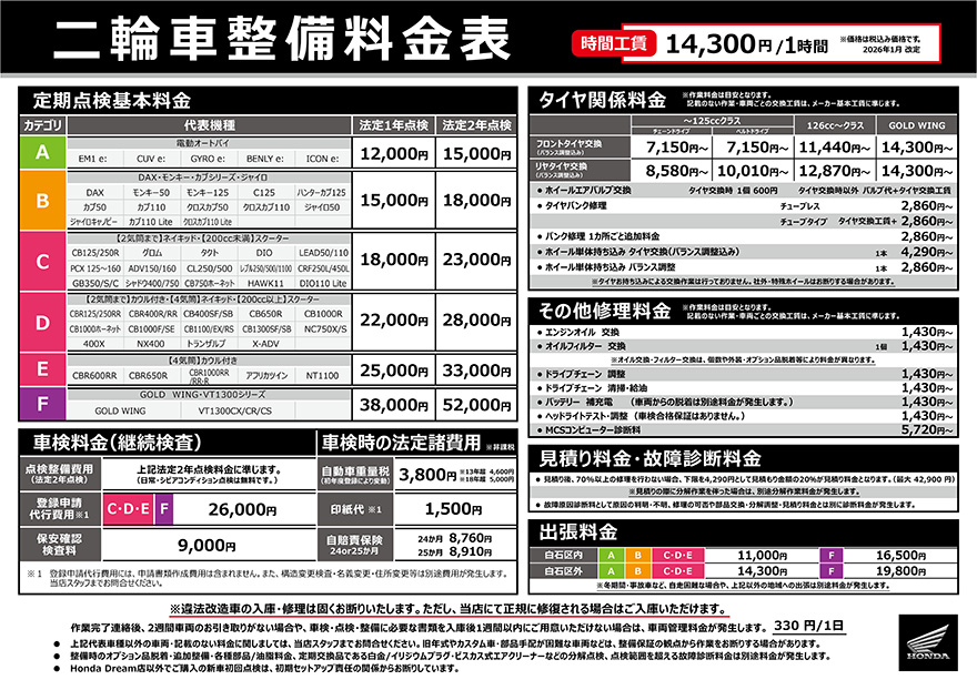 Honda Dreamで法令及びHondaが指定する点検整備実施した車両。